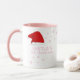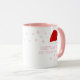 Bebê Rosa é o primeiro Natal do Santa Hat Snowflake Mug. Primeiro design de Natal bonito com um chapéu de Papai Noel, flocos de neve cor-de-rosa e um nome de bebê - personalize com o nome do seu bebê.