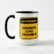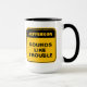 Caneca O rótulo de aviso amarelo engraçado parece um prob