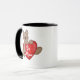 Um urso de ursinho guardara um coração vermelho grande que leia "esteja meu" em uma caneca do dia dos namorados que faça um grande presente para qualquer um que é seus namorados especiais!