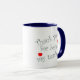 Esta caneca oferece a um estudante ou a toda a turma uma maneira de dizer obrigado a seu professor especial. "Obrigado por ser minha professora" é apresentado em tiras azuis claras junto com duas maçãs vermelhas brilhantes. A design aparece em ambos os lados desta manhã café ou caneca de chá. O fundo branco e a cor da alça e dentro do copo podem ser facilmente personalizados de acordo com o seu desejo.