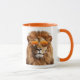 Ponha seu peito matinal com um rugido usando nossa 'Lion Mug' de óculos de sol. Esta caneca apresenta um leão majestoso fazendo um legal par de óculos de sol, fazer-a o companheiro perfeito para seu ritual de café ou chá. Excelente por adicionar um toque real à sua cozinha ou como presente para o rei ou rainha da selva urbana na sua vida. Feito para conforto e estilo, não é apenas uma caneca, é uma afirmação! Cor laranja.