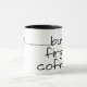 Engraçado dizer canecas para o trabalho e casa para pessoas ocupadas e ficar em mães caseiras. Ok, mas a primeira caneca de café carregar a frase familiar e pop no estilo de tipografia minimalista simples e casual. Se você precisar de café pela manhã para acordar e iniciar as funções do seu sistema, será uma caneca excelente para você. Também faz um presente prático divertido para um verdadeiro amante do café.