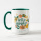 A design apresenta as nossas lindas flores amarelas floridas de flor silvestre e abóboras amarelas e abóboras em amarelo-claro, cor-de-rosa e verde. O jardim floral e as borboletas de flores silvestres criam uma bela coroa floral de abóbora, com as palavras "olá, abóbora" em uma bela fonte de na moda de pincel. Personalizado com o nome. Todas as ilustrações são obras de arte feitas à mão pela Moodthology. Esta é a caneca perfeita para desfrutar da sua bebida favorita nessas lindas manhãs de outono.