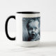Uma pintura digital de um bebê surpreso com fundo de arte Op. Combo Mug, 15 oz