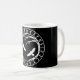 Esta é nossa caneca original de Yggdrasil Futhark. Yggdrasil é a árvore dos mundos ou a mitologia de noruegueses e a árvore de vida vasta que liga os nove mundos. Nosso design original é cercado pelo Futhark mais velho, o alfabeto mágico dos viquingues, e patrulhado por corvos de Huginn e de Muninn - de Odin. Projetado por etiquetas das ovelhas negras e agora disponível como uma caneca feito-à-medida.