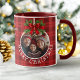 Caneca Ornamento da Bola de Natal Foto Xadrez Vermelha Bu