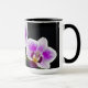Uma espantosa orquídea branca e púrpura graciosamente destaca-se contra um fundo negro profundo, suas pétalas exibindo uma delicada mistura de cores que simboliza elegância e serenidade. Essa flor requintada, muitas vezes associada ao luxo e à beleza, desenhar a atenção com seus intrincados padrões e matizes vibrantes. O contraste entre as cores vívidas da orquídea e o pano de fundo escuro melhora sua atração etérea, fazer-a um assunto cativante tanto para fotógrafos quanto para botânicos.