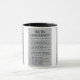 Esta caneca apresenta os 10 Mandamentos em uma impressão com letras em negrito com letras negras em um fundo de cinza com sotaques de borda. A jante e o manípulo são vidrados em cores compatíveis, disponíveis em micro-ondas e máquinas de lavar louça de tamanho 11 onças ou 15 onças, construindo cerâmica segura.