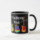 Celebre seu professor por fazer um ótimo trabalho com esta divertida caneca de café Os Professores Tocam com guitarras psicodélicas coloridas e tipografia moderna de rock and roll. Guitarras elétricas únicas e ilustrações detalhadas de guitarra acústica em azul vibrante rosa roxo verde azul amarelo e laranja em um fundo preto. Arte original da artista Catherine Sweetman