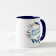 Esta elegante caneca de Natal apresenta uma coroa com rena ouro e verde azul e cinza. Feliz Natal está escrito em um belo roteiro escrito à mão.