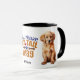 "You Make My Tail Wag" declara esta caneca fofa com um adorável cão de varejo Ouro sentado em cada lado. Bonito para o dono ou fã do cão do Ouro Retriever! Você pode adicionar o nome de alguém no meio inferior ou excluir o texto, se quiser.