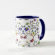 Esta caneca elegante apresenta designs inspiradas pelas gravuras florais nas paredes do mármore do Templo do Ouro em Amritsar, Punjab. A luz do Harminder Sahib brilha em sua casa.