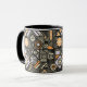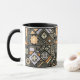 Padrão de abstrato com formas e linhas geométricas em um BKground preto.
