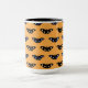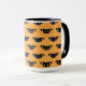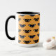 Essa imagem apresenta um padrão repetitivo de borboletas pretas com manchas azuis e brancas em suas asas, colocadas sobre um fundo laranja vibrante. O padrão é simétrico e visualmente atraente, fazer excelente para vários design.