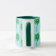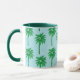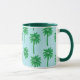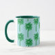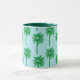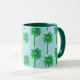 Este padrão apresenta um padrão de palmeira verde sobre um fundo azul claro.