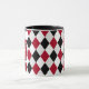 Um monograma personalizado de caneca preta e vermelha com padrão de diamante de harlequin.