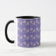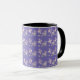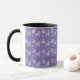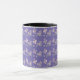 Padrão de Dogwood sobre fundo roxo numa caneca. Um padrão adorável de pétalas de madeira de cão. Beba seu café matinal com um toque de primavera.