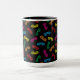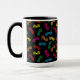 Ilustração vetorial de óculos de festa multicoloridos em um padrão repetitivo contra fundo preto.