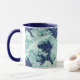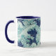 Este é um padrão de ondas extremas do mar azul, ciano e aquamarina com espuma e salpicos, baseado no trabalho de Katsushika Hokusai (1760-1849).