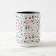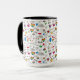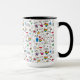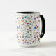 Este trabalho de arte apresenta um padrão que inclui vários símbolos relacionados ao orgulho gay num design colorido.