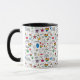 Este trabalho de arte apresenta um padrão que inclui vários símbolos relacionados ao orgulho gay num design colorido.