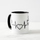 Design de batimento cardíaco preto sobre fundo branco, completo com uma xícara de café