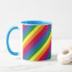 Este trabalho de arte apresenta listras arco-íris num padrão colorido e divertido.