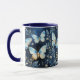 Caneca Padrão Dourado de borboleta azul legante no Marinh