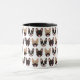 Ilustração de três cachorros de Bulldog franceses de diferentes cores.