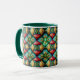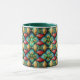 Padrão vibrante e simétrico com um talento de inspiração africana. O design apresenta elementos florais e geométricos abstrato em cores ousadas como verde, vermelho, turquesa e ouro. Superfícies texturizadas e linhas finas adicionam profundidade e movimento, fazer perfeito como design de azulejo para tecidos, decoração doméstica ou acessórios de moda.