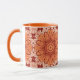 Mug em um padrão geométrico de margarina em laranja, laranja pastel e vermelho ferrugem profundo
