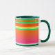 Uma caneca de padrão listrada no Natal moderno. A decoração do Natal verde vermelho lixa a caneca. Design artístico moderno criativo de caneca de inverno. Listras contemporâneas cozinha verde-natalícia, cor-de-rosa.