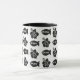 Padrão preto e branco de Tiki com flores e motif de peixe na caneca de café funky.