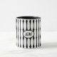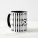 Bonito padrão preto e branco, com manípulo preto e interior. Nós modelamos esta caneca preta e branca para facilitar a digitação de suas próprias iniciais ou monograma. Temos este padrão em outros produtos pessoais e domésticos, também, juntamente com outros padrões pretos e brancos em nossa coleção Black & White.