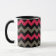 Uma caneca preta moderna em crimson vermelho, preto e padrão de fevron de cinza.