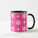 Festivo, rosa e branco, flocos de neve, padrão de natal na caneca.
