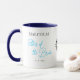 Caneca comemorativa do Pai da Noiva com pássaros fofos em forma de coração. Nome e data facilmente editáveis.