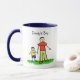 Pai e filho dão as mãos. A camisa do homem dizia "pai" e a camisa do menino dizia "eu". Os pais e a família infantil têm cabelo morena. O título diz "Pai Boy", mas você pode mudá-lo para adicionar nomes personalizados! Esta imagem da família pai e filho também vem em cor como loira ou em cor nenhuma como desenho. Faça uma caneca de presente de Dia de os pais personalizada com seu próprio texto e imagens usando o botão "Personalizar!"!