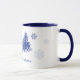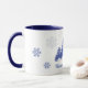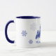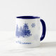Ilustração de Natal com paisagem de inverno e decoração de flocos de neve em azul