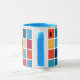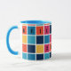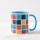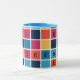 Quadrados coloridos com quebra-cabeça de palavras cruzadas. Técnicas de cozinhar, exibidas em um padrão verificado de cores brilhantes e bonitas. Uma caneca interessante e divertida para a cozinha. Local de texto para personalização de nome. Parte da coleção Plethora de Padrões.