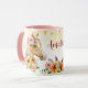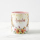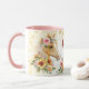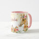 Cavalo de palomino com girassóis e flores cor-de-rosa, garotas florais personalizadas chamam modelo de caneca. Belo retrato de cavalo de aquarela, bom para pessoas carinhosas de cavalo.