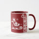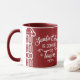 Uma caneca vermelha de férias com a tipografia "Papai Noel está vindo para a cidade". Perfeito para todas as suas bebidas quentes de inverno de manhã e noite.