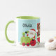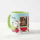 O bom trem do Papai Noel com 3 carros que guardam 3 de suas fotos favoritas. Adicione o nome da sua escolha. Você pode personalizar esta caneca com outras cores internas e manipular as cores se quiser. Tão doce.