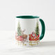 Celebre o espírito de Natal com esta charmosa caneca de cerâmica verde, com Papai Noel sentado no trenó aberto, acompanhado de sua rena icônica e de uma bela árvore de Natal decorada. Com o "Feliz ano novo" escrito em elegantes letras douradas abaixo, esta caneca captura o calor e a alegria da estação, perfeito para apreciar suas bebidas de férias favoritas.