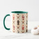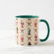 Diferentes estilos de Santa Cláusula do mundo todo e diferentes eras. Holly feito em X formas e no centro das X são os nomes de Papais noeis de todo o mundo e das diferentes culturas. Um design vitoriano. A cor da caneca pode ser alterada para se adequar ao seu estilo pessoal.
