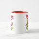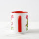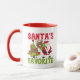 Uma caneca de design de Natal bonita e colorida, com texto vermelho e verde que lê Papais noeis Favoritos, e Papai Noel, uma árvore de Natal, e uma rena!