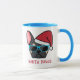 Incêndio em felicidade de feriado com esta frenchida Papai noel pinta caneca de café. Esta caneca adorável apresenta um buldogue francês preto e bronzeado vestindo um chapéu vermelho de Papai Noel e óculos de sol na moda. É a maneira perfeita de abraçar o espírito de feriado com cada gota.