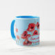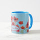 Papagaios vermelhos Aquarela Mug azul, com um nome totalmente personalizável. Um glorioso design floral de aquarela. Projetado a partir das minhas pinturas de aquarela originais, que pintei a partir do meu próprio jardim floral.