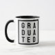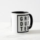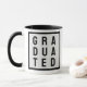 Para o recém-formado. Um Formando estudante Coffee Mug diz "graduado" com a palavra dividida em 3 linhas e contida dentro de uma caixa. Preto e Branco. Comemore as conquistas acadêmicas de um estudioso recém-formado com essa caneca comemorativa de café. Projetada para honrar sua conclusão bem-sucedida da faculdade, esta caneca é um presente pensativo para marcar o marco significativo em suas vidas. A caneca apresenta um design elegante e ousado que incorpora o espírito da realização, criando uma peça visualmente impressionante e inspiradora. Quer seja usada como lembrança diária de seu trabalho de duro e dedicação, ou exibida orgulhosamente em uma mesa ou prateleira, essa caneca evocará lembranças amáveis de sua jornada universitária e servirá de lembrete das possibilidades ilimitadas que se avizinham. É um sinal significativo felicitar e encorajar o acadêmico recém-formado ao embarcar no próximo capítulo de sua vida.
