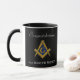 Preto, parabéns, Mestre Mason, caneca de Freemason. Praça maçônica e caneca de bússola. Personalize-o com o seu próprio texto ou elimine-o e escreva as suas próprias palavras à mão.